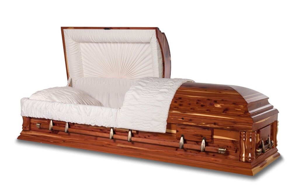 There are a variety of types of wood a casket may be constructed of. The more expensive wood caskets are made from mahogany, walnut, or cherry; medium options are oak, birch, and maple; and the lowest-price wood casket options are pine, poplar, and willow. This should be used as a general guideline, as other factors help determine the price such as the hardware finishes.